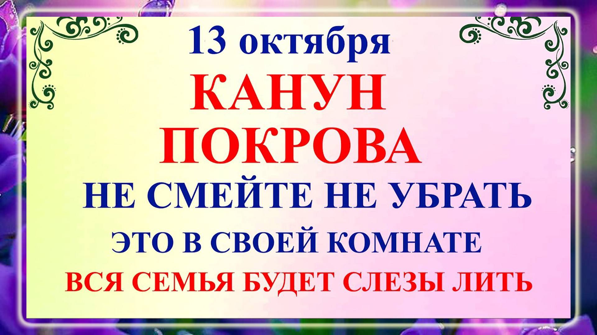 🌾 13 октября — подготовка к празднику Покрова 🕊️ ✨ Наводим чистоту и порядок в доме 🛏️ 🌿 Готовим праздничные блюда и угощения 🍽️ 🕊 Молимся и читаем акафисты 📚 🌞 Не смотрим прямо на солнце 🌞 🔥 Не производим ремонтных работ 🔨 😡 Не конфликтуем и не раздражаемся 🤬 📜 Не одалживаем деньги 💸 💁♂️ Не начинаем дальние путешествия 🚗 🎭 Не моем и не расчёсываем волосы 💇♀ 🌡 Не употребляем алкоголь 🍹 Подписывайтесь на канал, оставляйте донат и делитесь своими историями! 🌟