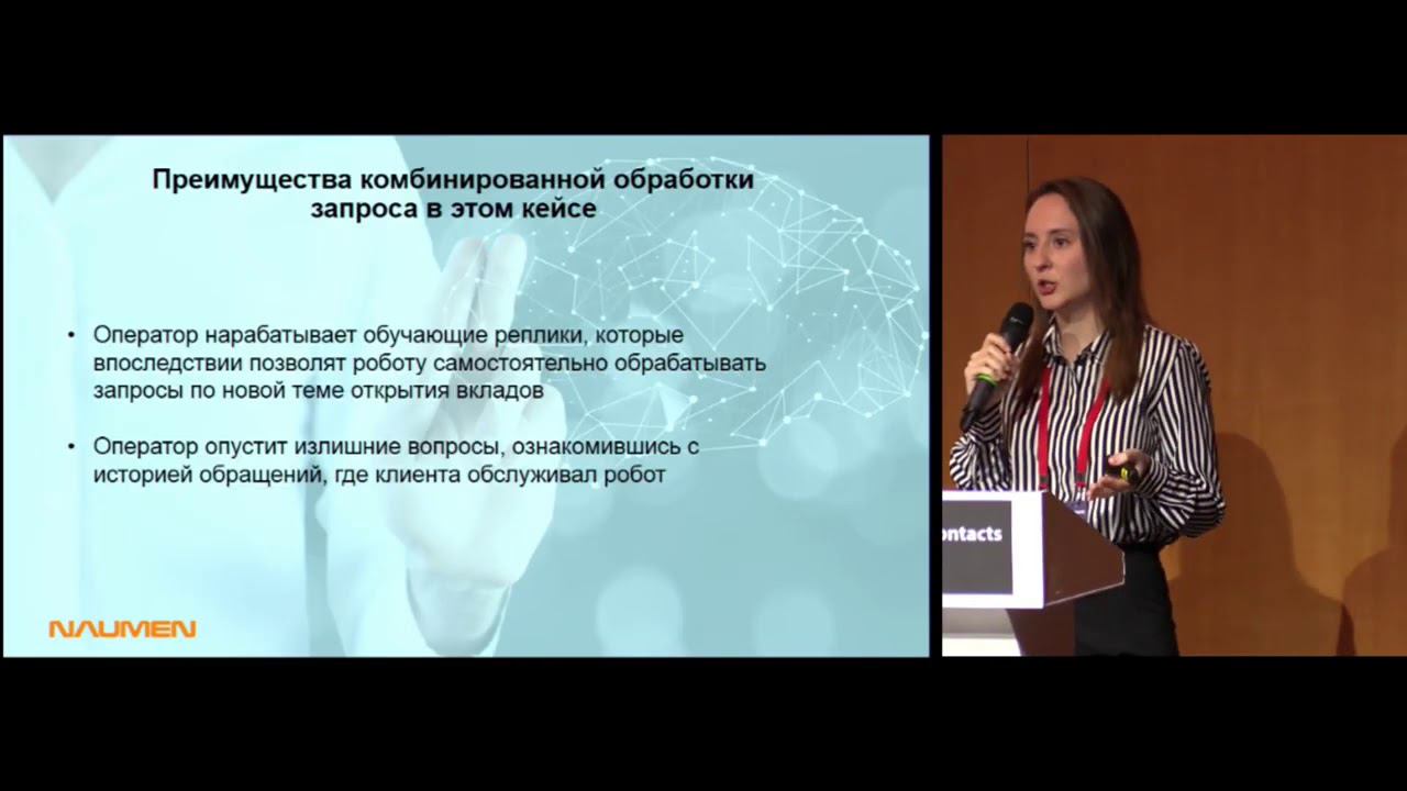 Как эффективно комбинировать обслуживание роботом и оператором в цифровых каналах Дата проведения: октябрь 2019 Спикер: Анна Логошина Тезисы: • Как роботизация повлияла на процессы обслуживания в КЦ и на подход к омниканальности: основные тренды • Кейсы привлечения робота и оператора для обслуживания клиентов в рамках одной сессии • Конфигурация системы отчетности на уровне робота и оператора и единый мониторинг по всем агентам поддержки: демо интерфейсов