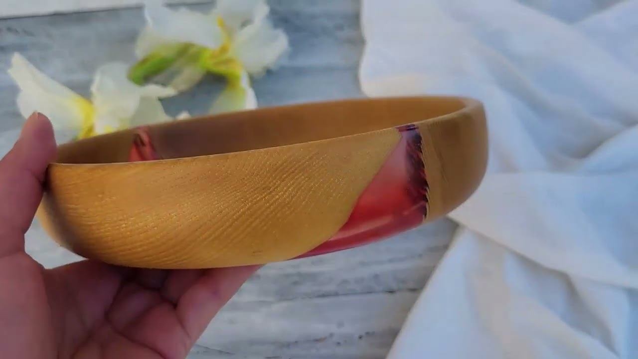 Комбинированные блюда подходят для подачи холодных и теплых (до 70 градусов) продуктов! Тарелочка изготовлена из массива дерева с полимерной заливкой. Такие изделия с цветными заливками привлекают взор и восхищают своей необычностью и красотой. Тарелки могут украсить не только ваш интерьер, но станут эффектным и необычным подарком. Тарелочки с заливками можно использовать для подачи фруктов, конфет, печенья, различных сладостей, и нарезок. Размеры: диаметр 20,5 см., высота 4 см., объем 700мл., вес 400г.
