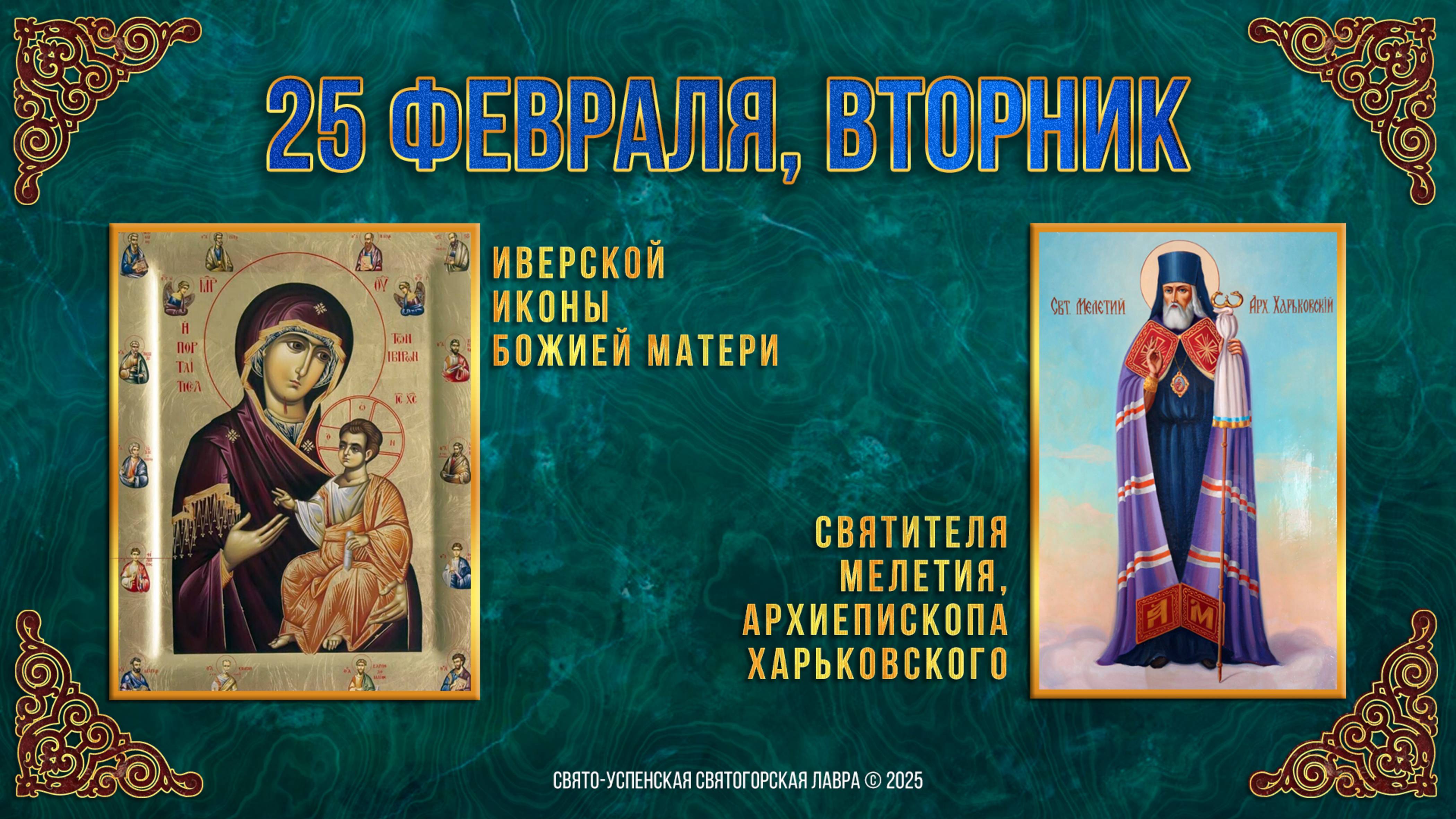 Иверской иконы Божией Матери. Свт. Мелетия, архиепископа Харьковского. 25 февраля 2025 г.