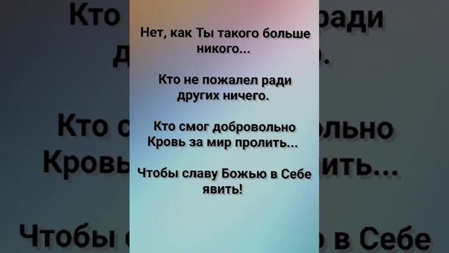 ХРИСТИАНСКИЕ ПЕСНИ ДЛЯ ХВАЛЫ ПОКЛОНЕНИЯ ПРОСЛАВЛЕНИЯ ЕВАНГЕЛИЗАЦИИ ДУХОВНОГО РОСТА ПРОБУЖДЕНИЯ ВОЗРОЖДЕНИЯ #господь#музыка#христианская_музыка#музика#христианскиепесни#бог#христианскиестихи#любовь#христианство#стихи#песня#песни#иисус#иисусхристос#иисусмойбог#иисус_христос#иисусбог#иисусгосподь#хвалы_и_поклонения#хваление#хвала#прославление#духсвятой#духовныйрост#духовноепробуждение#духовность#евангелие#евангелизация#евангельскаявесть#духовный_рост#пробуждение#рождество#рождествохристово#божий#божийнарод#божьеслово #ХристианскаяПесня #ХристианскоеПоклонение #ХристианскаяНоваяПесня #ПастырьМоейДушы #ХристианскаяМузыка #ПесняСлавы #Иисус #ЛюбовьБожья #ХристианскиеТексты #СлаваГосподу #ВераИПоклонение #ВечнаяЛюбовь #RussianChristianSong #RussianChristianWorship #RussianChristianMusic #RussianWorship #NewRussianChristianMusic #RussianChristianMusic #RussianSongOfPraise #Jesus #GodsLove #ChristianLyrics #GloryToGod #RussianFaithAndWorship #EternalLove #Пасха #Воскресение #ХристосВоскрес #пробуждение #возрождение https://stihi.ru/avtor/zhanna70 "ТЫ - ПОЛНОТА, НАПОЛНЯЮЩАЯ ВСЁ!" СЛОВА, МУЗЫКА, ОБРАБОТКА: ЖАННА ВОЛКОВА-ВАРЛАМОВА https://stihi.ru/2025/07/30/4577 Стихи Жанна Юрьевна Волкова-Варламова Вступление 1 Куплет Прежде чем был создан этот мир... Ты избрал нас в вечности Своей. Среди звёзд и всех небесных лир Сделал нас семьёй ... обрёл детей! Припев: Нет, как Ты такого больше никого... Кто не пожалел ради других ничего. Кто смог добровольно Кровь за мир пролить... Чтобы славу Божью в Себе явить! 2 Куплет Ты - Полнота, что наполняет всё... Искупленье Кровью нам дано. Всё земное и небесное - целое одно... Под главенством Христа соединено! Припев: Нет, как Ты такого больше никого... Кто не пожалел ради других ничего. Кто смог добровольно Кровь за мир пролить... Чтобы славу Божью в Себе явить! Ты - Полнота, что наполняет всё... Искупленье Кровью нам дано. Всё земное и небесное - целое одно... Под главенством Христа соединено! Припев: Нет, как Ты такого больше никого... Кто не пожалел ради других ничего. Кто смог добровольно Кровь за мир пролить... Чтобы славу Божью в Себе явить! 3 Куплет Слово правды мы услышали... Благовествование Твоë. Ты дал Его, чтобы жизнь мы выбрали... Через Него, чтоб дать наследие Своë! Припев: Нет, как Ты такого больше никого... Кто не пожалел ради других ничего. Кто смог добровольно Кровь за мир пролить... Чтобы славу Божью в Себе явить! Бридж Просвети же очи наших сердец... Дай познать надежду до конца. Дай Славы, мудрости в Себе венец... От великого Небесного Отца. Припев: Нет, как Ты такого больше никого... Кто не пожалел ради других ничего. Кто смог добровольно Кровь за мир пролить... Чтобы славу Божью в Себе явить Заключение: Ты - Глава для Церкви, Иисус, Тела Своего. Выше власти, выше силы, выше всех имён. Всё на свете теперь под Твоей ногой... Твой Престол навеки был утверждён!!! 30.07.2025 Жанна Волкова-Варламова