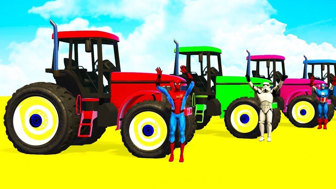 Цветные Тракторы Человек Паук и Супергерои Мультики про Тракторы и Песенки для Детей