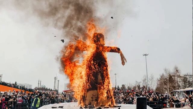 Традиционно, кульминацией праздничных мероприятий, посвященных Масленице является сжигание чучела.