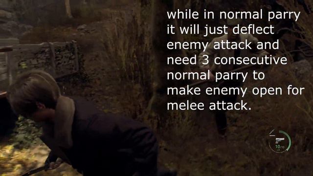 Resident Evil 4 Remake regular parry vs perfect parry comparison The upcoming remake of then original Resident Evil 4 is will introduce as to a new mechanic which is the parry. Parry will deflect enemy attack and need 3 consecutive parry to make enemy open for melee attack. While the perfect parry is when you perfectly timed the parry on the enemy attack. It will instantly stagger enemy and make them open for a melee attack.