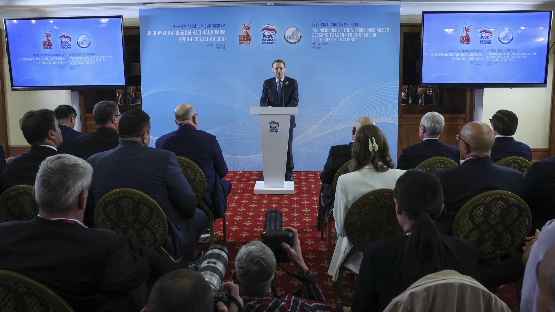 28 апреля 2025 года в отеле «Националь» состоялся международный симпозиум «О значении победы над нацизмом. Уроки создания ООН», организованный всероссийской политической партией «ЕДИНАЯ РОССИЯ». Вместе с делегатами из других стран представители партии обсуждают сохранение исторической памяти, а также принципы и нормы Устава ООН. Подробнее: https://historyrussia.org/index.php?option=com_content&view=article&layout=edit&id=11308 Российское историческое общество (РИО)