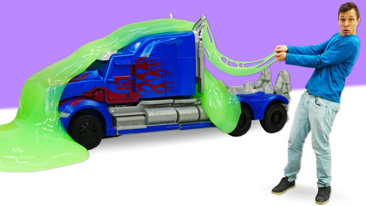 Видео машинки - Робот Трансформер в Слайм Ловушке! Оптимус Прайм в Мастерской! – Игры для мальчиков