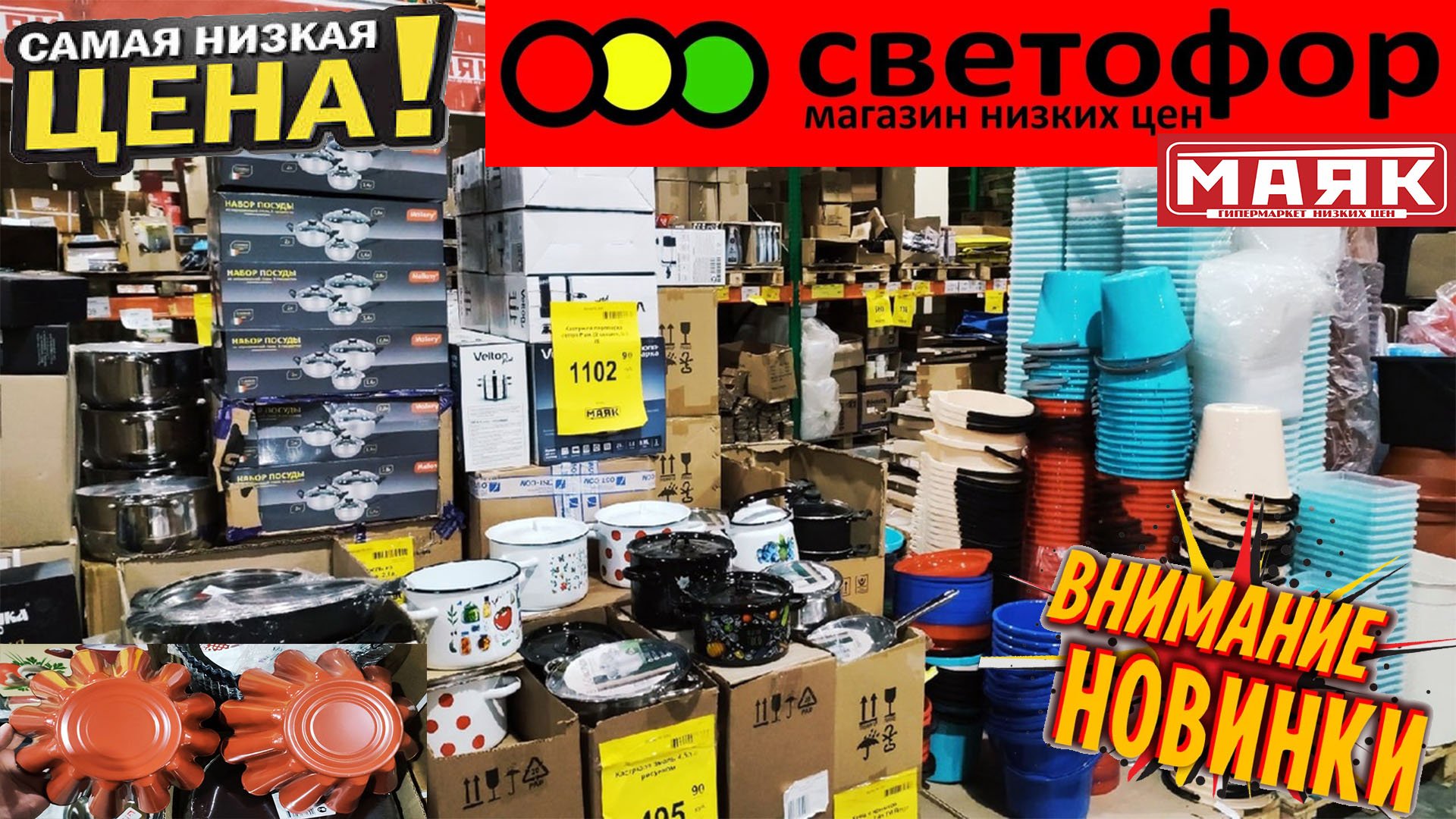 Обзор магазина Светофор Маяк. Эмалированная посуда. Одежда. Продукты.