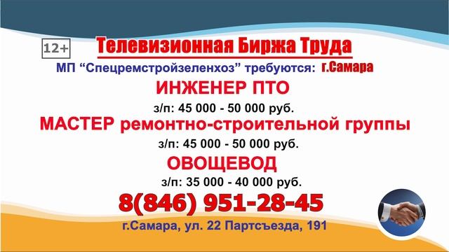 10.03.25г. в 19.20 на телеканале ГУБЕРНИЯ Телевизионная Биржа Труда в Самаре и области
