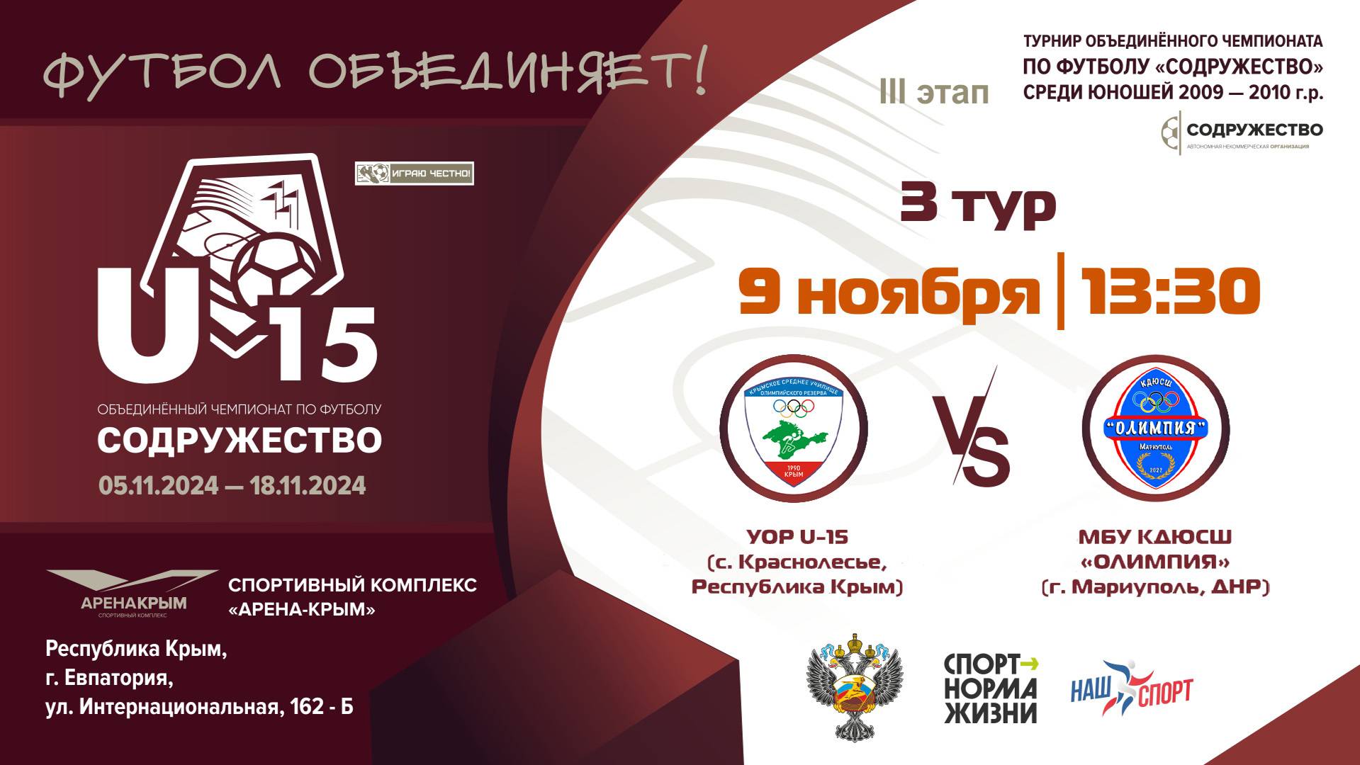 3 ТУР | U-15 | УОР U-15 (Республика Крым) vs МБУ КДЮСШ "Олимпия" (г. Мариуполь, ДНР)