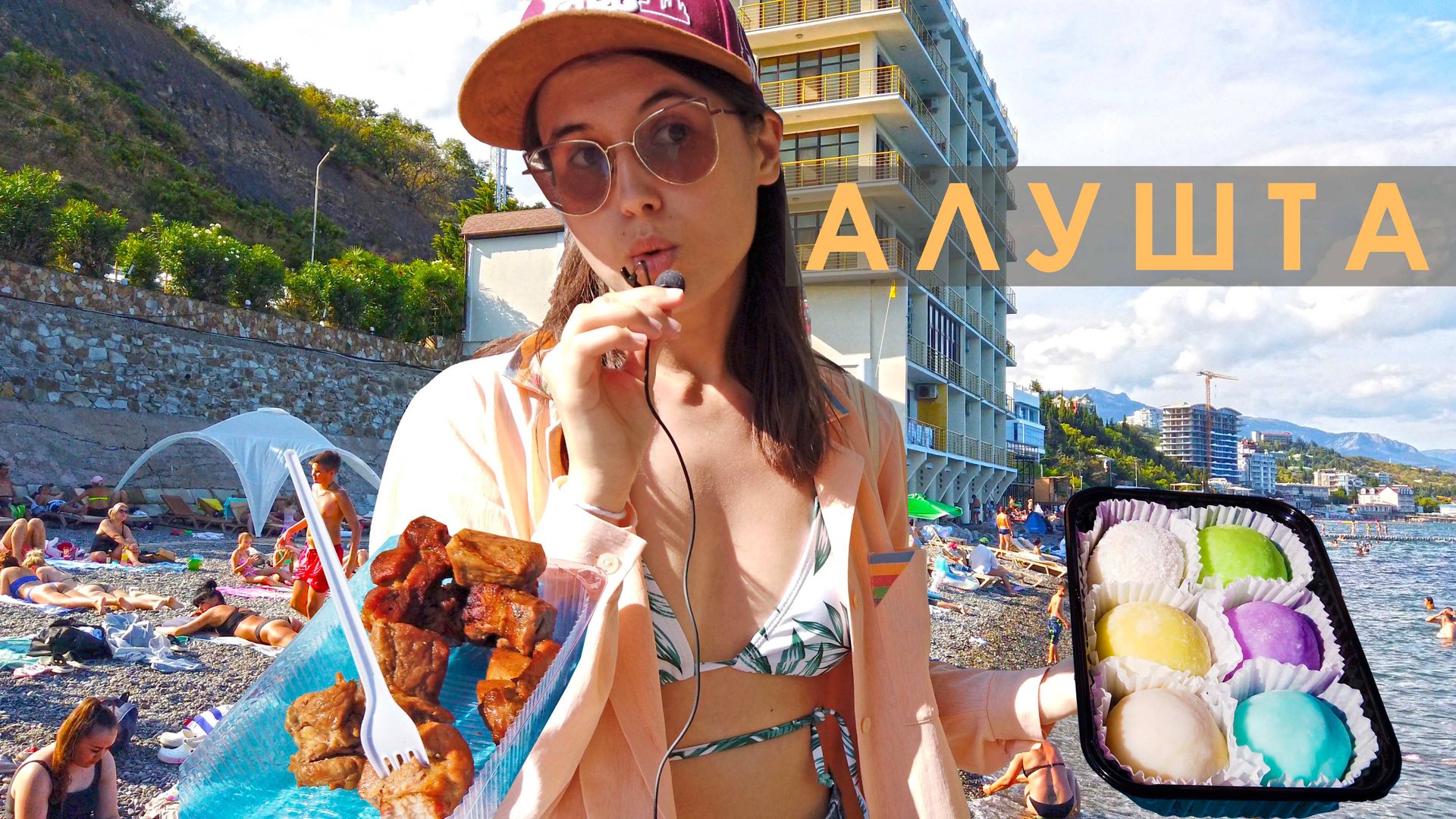 Алушта. Где купаются и ходят туристы. Дома на берегу. Едим моти и шашлык на пляже. Сезон в Крыму. 4K