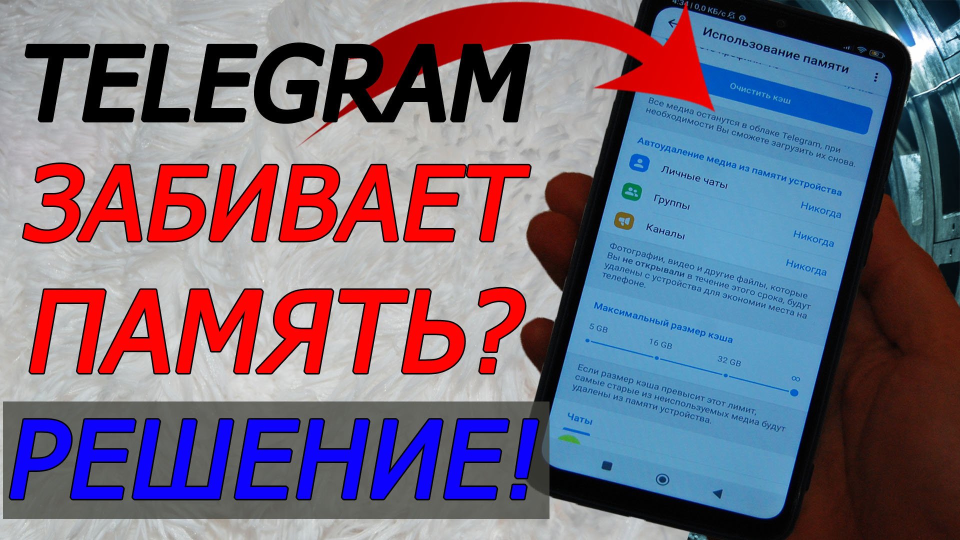 Очистил память телефона на 37.8 гб удалив кэш из телеграм! Как очистить память телеграмма?