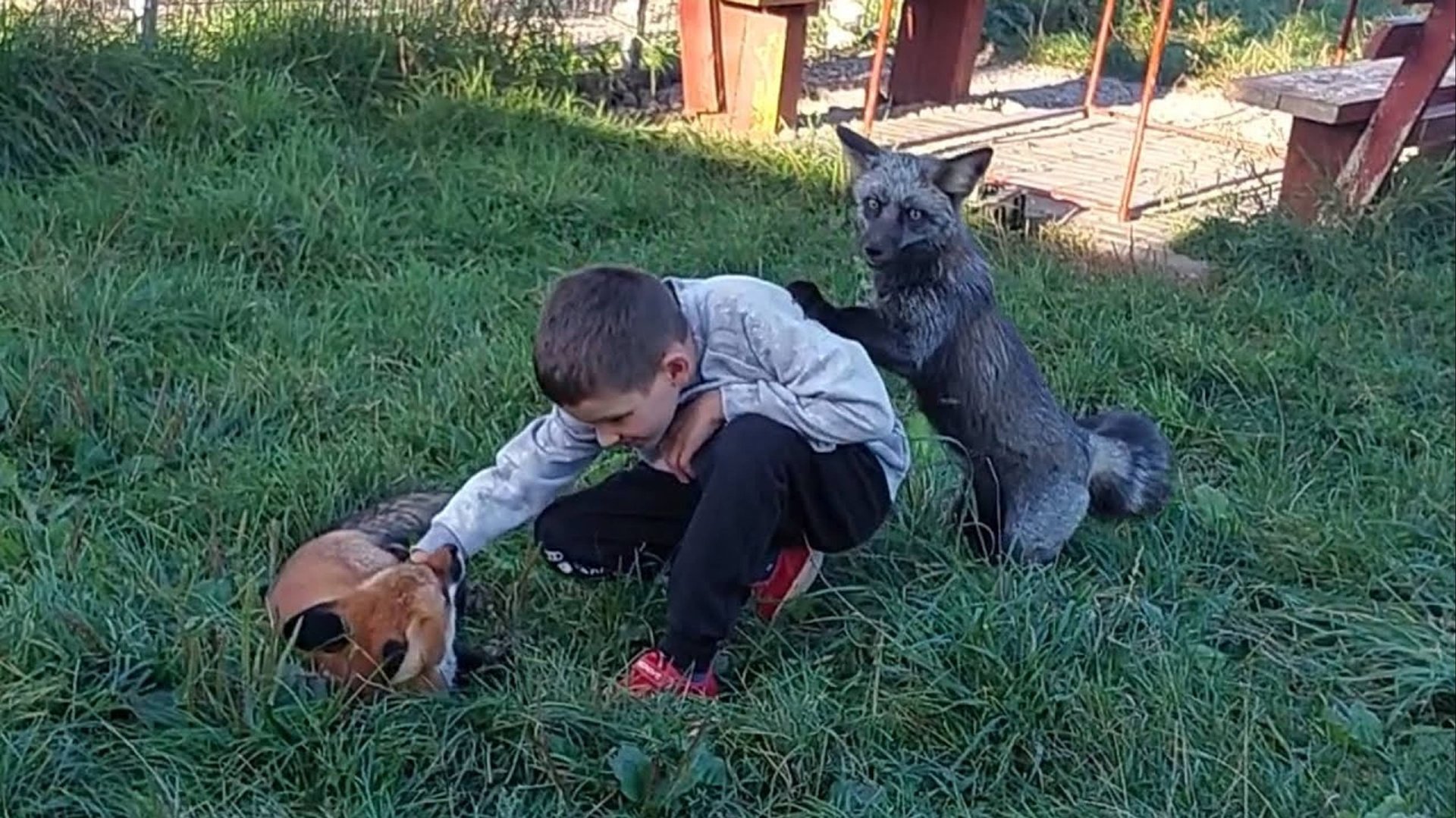 Лисы играют с детьми