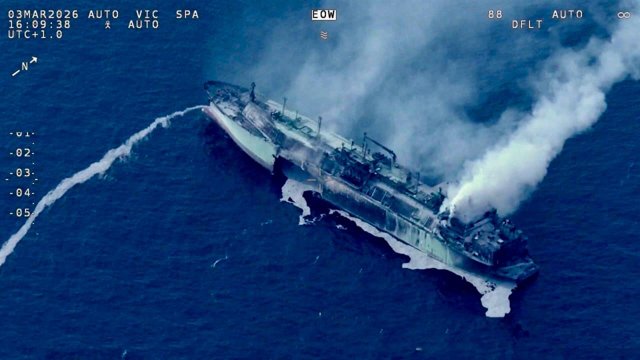 Появились кадры атакованного ВСУ российского газовоза в Средиземном море.
