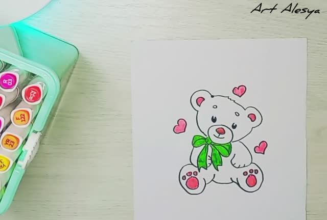 Рисую милого мишку с сердечками!🥰
