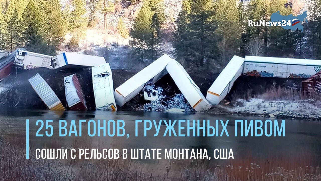 25 вагонов, груженных пивом, сошли с рельсов в штате Монтана, США