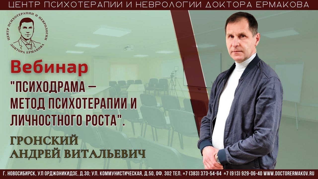 Психодрама это метод с более чем столетней историей. На вебинаре мы поговорим о том, как возник психодраматический метод, каковы его основные принципы и техники, и как он применяется для решения психологических проблем. Кроме того, на сегодняшний день техники психодрамы используются в других направлениях психотерапии – гештальт-терапии, расстановках, плэйбэк-театре и др., поэтому поговорим и о специфике именно психодраматического метода. Специалисты Центра психотерапии доктора Ермакова продолжают цикл бесед на интересные и сложные темы, поэтому будем разбираться в различиях. ✅ Основные темы, на которых будет сделан акцент: Основные понятия психодрамы, правила построения психодраматического действия, техники психодрамы, преимущества использования ролевой игры в психотерапии. ✅ В чем уникальность мероприятия? - Живой диалог со спикером в процессе вебинара. - Возможность получить ответы на свои вопросы в чате. На вебинаре будет проведена короткая демонстрационная сессия Ведущий: Гронский Андрей Витальевич - доцент кафедры психиатрии, наркологии и психотерапии НГМУ, кандидат медицинских наук, врач-психиатр, врач-психотерапевт, психолог, член Федерации психологов-консультантов России, гештальт-терапевт и психодраматист.