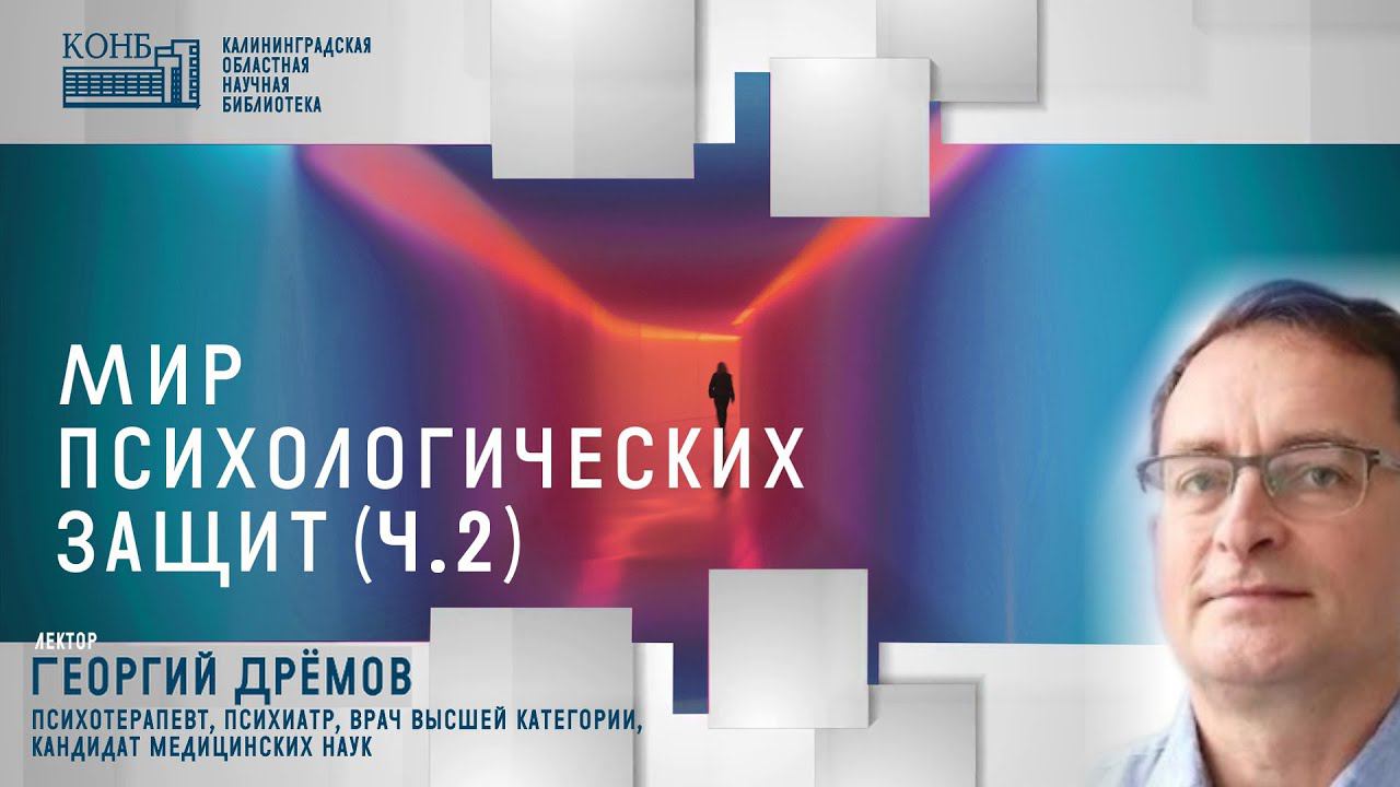 Ведущий: Георгий Дрёмов, психотерапевт, психиатр, врач высшей категории, кандидат медицинских наук. Авторский подход позволит определить сильные и слабые стороны «нового поколения мужчин и женщин 21 века; лучше понять основные тенденции, особенности личностного переживания стрессовых ситуаций у современных людей, связанные с особенностями их психики, детско-родительскими отношениями, влиянием внутренних психологических процессов, изменениями в обществе. Мир психологических защит (часть 1) https://www.youtube.com/watch?v=TGif5moOR4Q Лекторий «Психология» https://www.youtube.com/playlist?list=PL0Fz4jpWA4yFLVVPnGZgejOHeqKk4tcWJ Калининградская областная научная библиотека в соцсетях: https://vk.com/konb39/ Официальный сайт: http://lib39.ru/