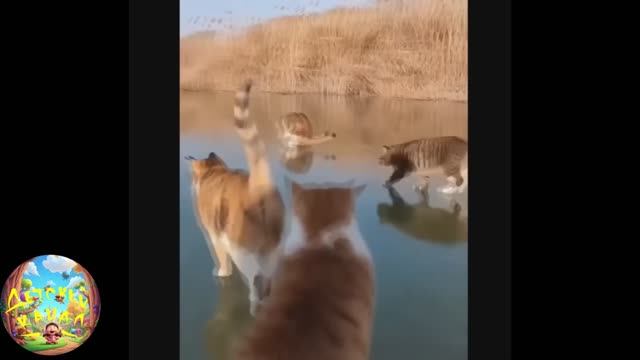Коты катаются на льду, котёнок-добытчик! Смешная подборка! #43