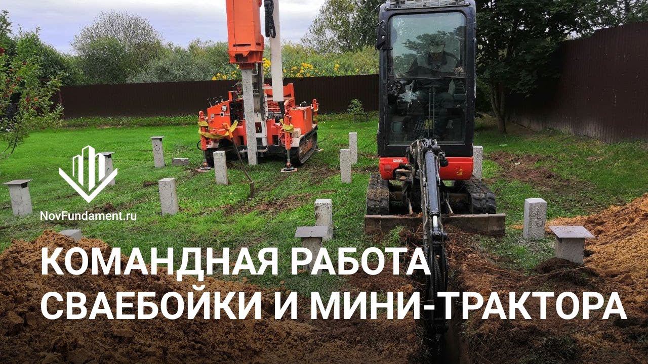 Комплексная работа: забиваем сваи и роем траншею для подведения воды к бане | НовФундамент