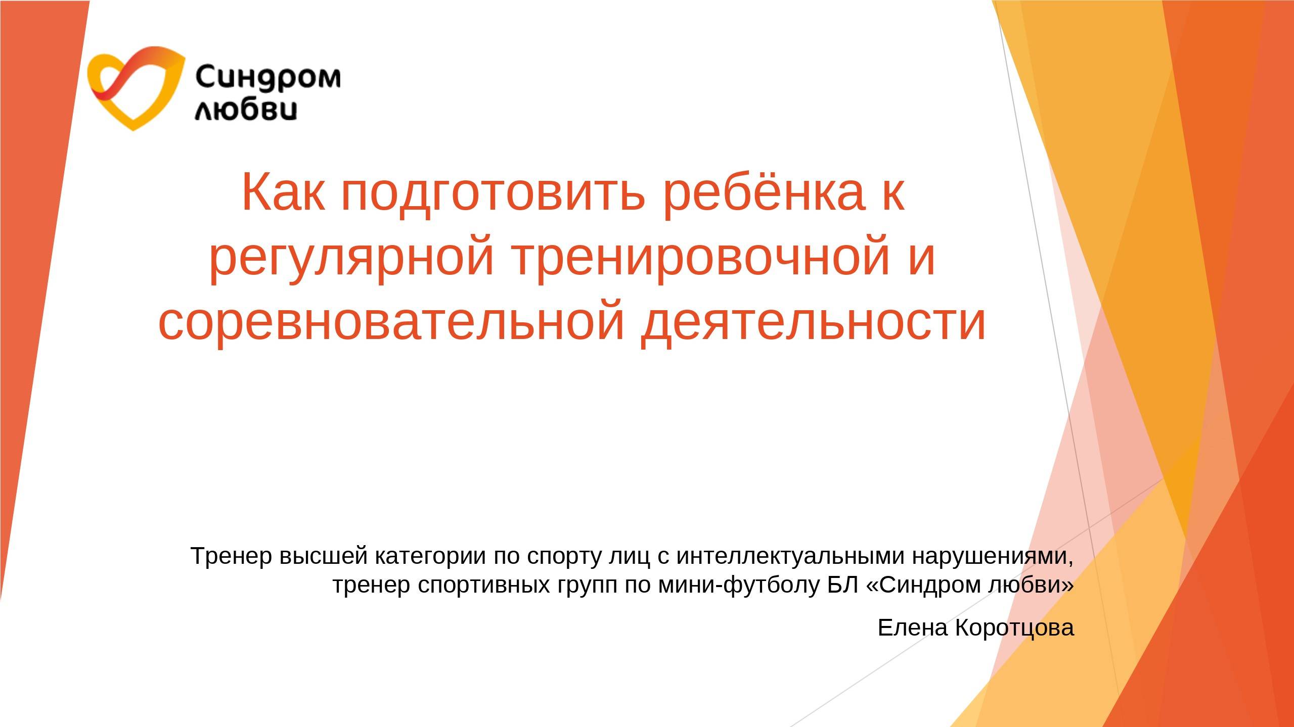 На вебинаре рассматриваются основные принципы воспитания спортсмена, а также речь идет о том, как в процессе спортивных занятий выстраивать детско-родительские отношения, как правильно взаимодействовать с тренером, чего могут ждать спортсмены и их родители от тренировочной и соревновательной деятельности. Ведущая вебинара - Елена Коротцова, тренер высшей категории по спорту ЛИН, тренер спортивных групп по мини-футболу БЛ «Синдром любви». *Спортивные программы для детей с синдромом Дауна в фонде «Синдром любви» реализуются при поддержке Фонда президентских грантов.