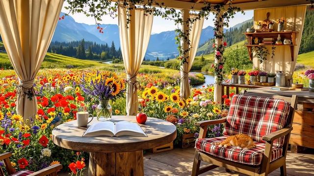 Чтение книги в цветочном поле — Звуки природы: Птицы, журчание горного ручья и лёгкий ветерок
