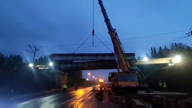Демонтаж железнодорожного мостового перехода через Соликамский тракт. город Пермь