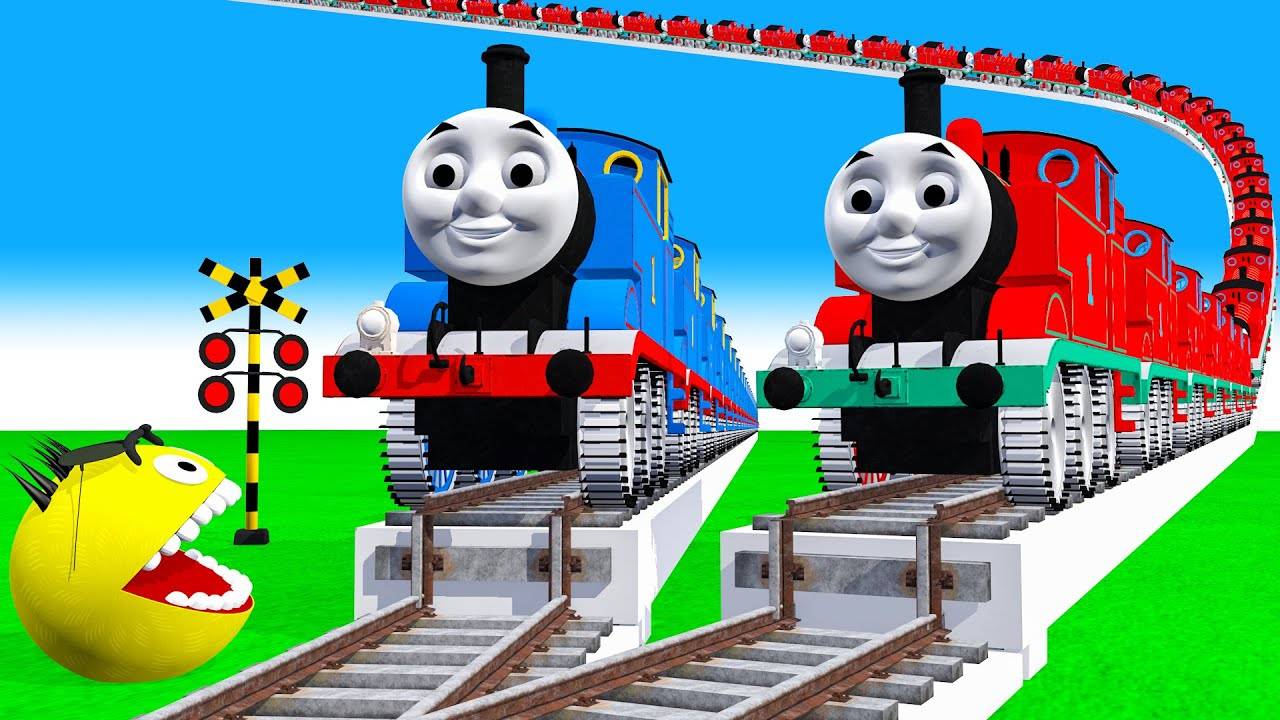МУЛЬТИК Железнодорожный переезд🚂✨ ВЕСЕЛЫЙ ПАКМАН, Человек-паук, Железный человек, смотреть мультики