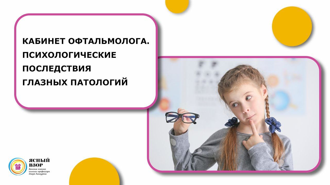 Многие глазные патологии имеют психологические последствия в жизни ребенка. Родители, которые задерживают лечение глазных заболеваний в надежде, что проблема исчезнет сама собой, не только способствуют ухудшению состояния зрения, но также рискуют подвергнуть своего ребенка эмоциональному стрессу со стороны социума. В новой программе "Кабинет офтальмолога с Игорем Азнауряном" мы ответим на самые популярные вопросы родителей. Гости:⤵️ Елена Александровна Кудряшова - детский офтальмолог и офтальмохирург сети детских глазных клиник профессора Игоря Азнауряна «Ясный Взор», страбизмолог, специалист по окулопластике. Юлия Костюк - практический психолог-консультант, кандидат психологических наук, эксперт в возрастной психологии. Смотрите новый выпуск и оставляйте свои вопросы в комментариях ✔️ Официальный сайт: https://prozrenie.ru +7 (495) 185 01 26; +7 (4012) 61 56 10 Москва и Калининград Мы в соцсетях: Facebook https://goo.gl/rOnxDy Вконтакте https://goo.gl/bM5OT2 Instagram https://goo.gl/xUSm2h