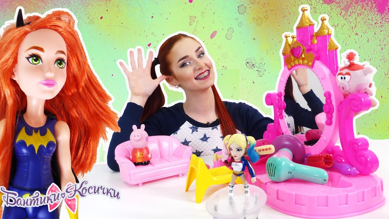 В салон красоты “Три хрюшки”, который открыли Нюша (Смешарики), Пеппа (Свинка Пеппа) и Таня Мур (Мурстители) пришла Харли Квинн (Отряд самоубийц) и попросила покрасить ей волосы. Пока мастера салона готовились к процедуре, Харли Квинн исчезла вместе с большим зеркалом. К счастью, в салоне делала укладку Супергерл. Она позвала на помощь Бэтгерл – давнюю соперницу Харли. О встрече хорошей и плохой девчонок – в новом видео на канале Бантики Косички. Еще больше видео на канале Бантики-Косички: https://www.youtube.com/channel/UCZJi3695pl6tfkAHp4BLMDA Детские видео на канале СМЕШАРИКИ live: https://www.youtube.com/channel/UCy15c4beE539pcPFt4-UrHg Новые видео для девочек на канале Страна Девчонок: https://www.youtube.com/channel/UCCe6oRAVWZFztZJMAujRu7A Заходи на наш сайт: https://www.4screens.ru Ищи нас в социальных сетях! ВКонтакте: https://vk.com/club132423271 Фейсбук: https://www.facebook.com/4ScreensShow Твиттер: https://twitter.com/4Screens_Studio Инстаграм: https://www.instagram.com/4screensstudio