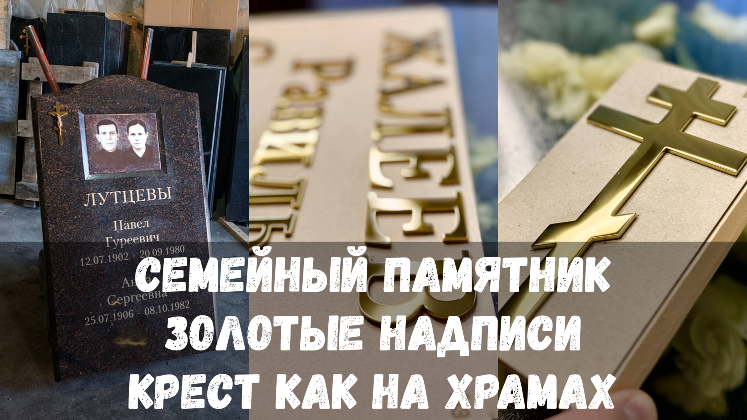 СЕМЕЙНЫЙ ПАМЯТНИК. ЗОЛОТЫЕ НАДПИСИ. КРЕСТ КАК НА ХРАМАХ