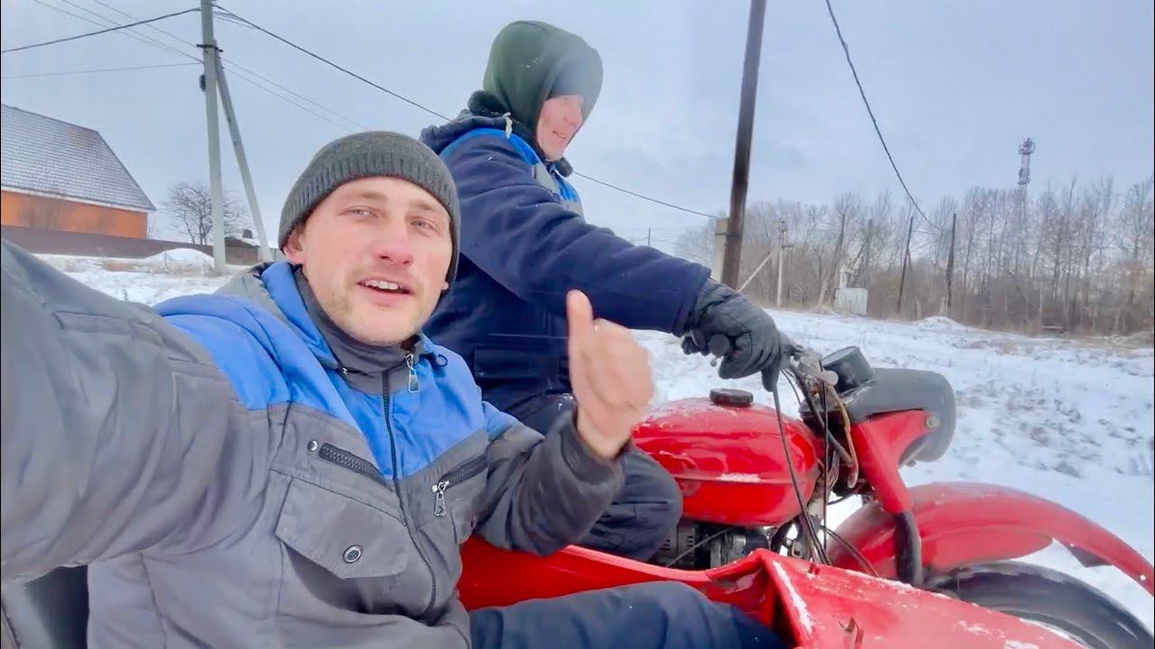 Зимой по полям на мотоцикле Урал