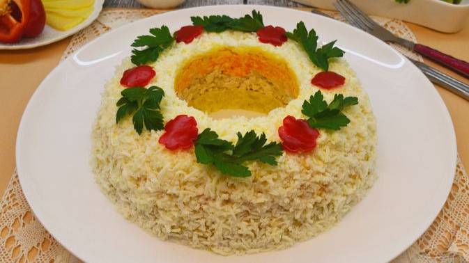 Когда важен не только вкус, но и внешний вид. САЛАТ "ВЕНОК" С КУРИЦЕЙ, ОВОЩАМИ И СЫРОМ