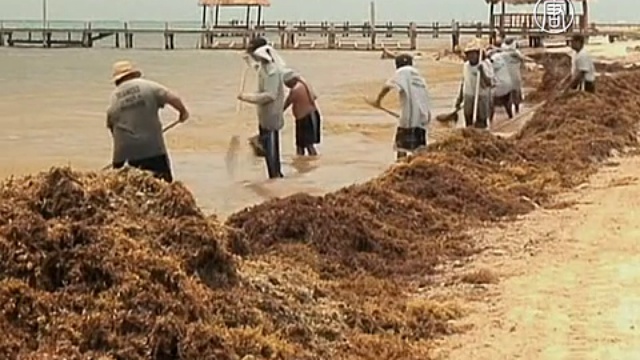Белоснежные пляжи Канкуна стали зелёными