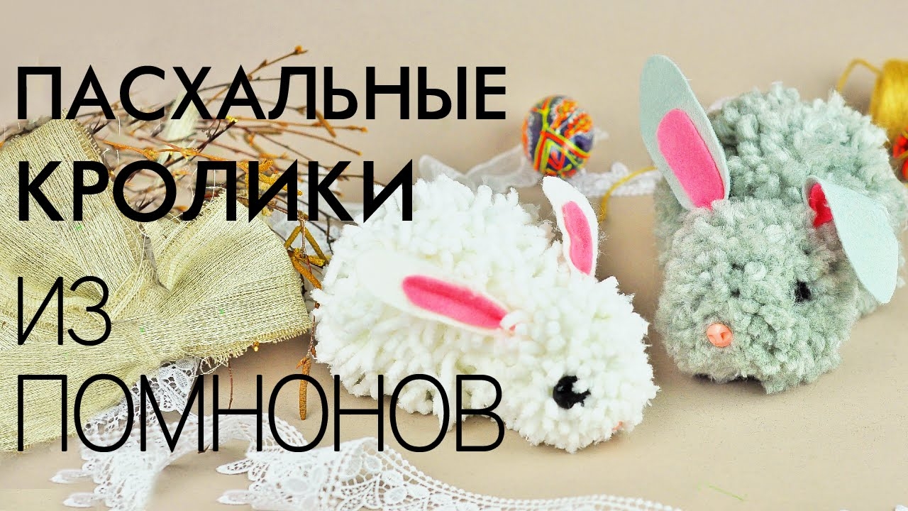 Как сделать пасхальных кроликов из помпонов своими руками