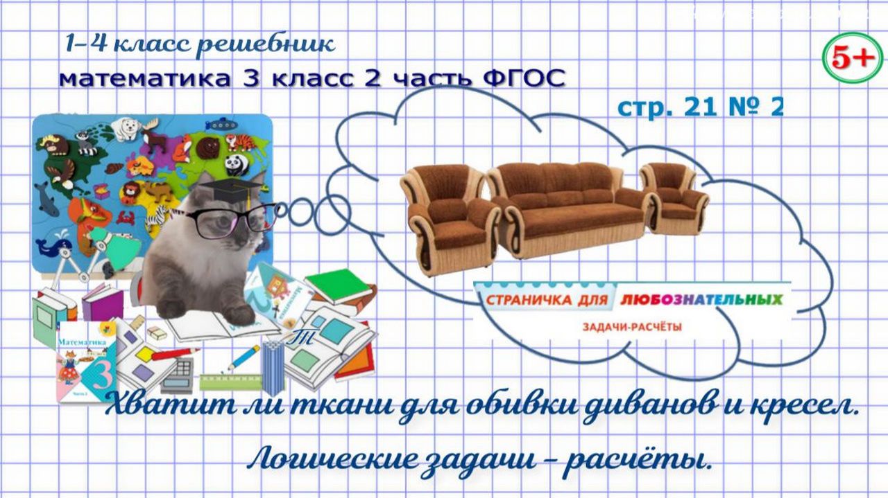 Страница 21 номер 2 математика 3 класс 2 часть Моро 2023 г ФГОС ГДЗ. Логические задачи - расчёты. Рассчитай, хватит ли ткани для обивки диванов и кресел. Обучение детей. Начальные классы. Если нашли ошибку, напишите, пожалуйста, в комментариях. Сайт с текстовым содержанием: https://dzen.ru/id/650204661aba9b0ba4b2643e #обучениематематике#математика3класс2частьстр21номер2#логическиезадачи#задачирасчёты#хватитлитканидляобивкидивановикресел#обучениедетей#математика3класс1частьФГОС#математика3кл1чФГОС#математика3класс1частьморо2023#длядетей#решебникматематика3класс#гдзматематика3класс#начальныеклассы#1-4классрешебник+