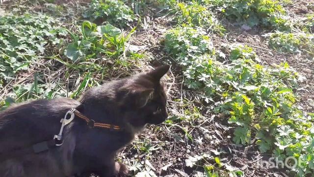 Котёнок Мишка на прогулке.