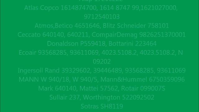 Воздушно масляный фильтр для компрессора Atlas Copco,Ceccato O 7055 (аналог 17200222,9712540103,39329602), используется для технического обслуживания компрессоров. Compressor oil filter Видео о масляном фильтре O7055 Применение: Alup 17200222 Atlas Copco 1614874700, 1614874799,1621027000,9712540103 Betico 4651646, Blitz Schneider 758101 Ceccato 640140, 640211, CompairDemag 9826251370001 Donaldson P559418, Bottarini 223464 Ecoair 93568285, 93611069, 4023.5108.2, 4023.5108.2, N 09202 Ingersoll Rand 39329602, 39446489, 93568285, 93611069 MANN W 940/18, W 940/5, Mann&Hummel 6750359096 Mark 640140, Mattei 57562, Rotair 099007S Sullair 237, Worthington 522092502 Sotras SH8119 TG Filter TGO210 Подберём фильтр аналог и проведём ТО винтового компрессора Дополнительная информация и контакты на сайте www.alfafilter.ru https://www.alfafilter.ru/catalog/separatory-dlya-kompressorov/ Гарантия и техническая поддержка ежедневно Контактный телефон +79255147109 - Whats App, Telegramm - https://t.me/Alfafilter