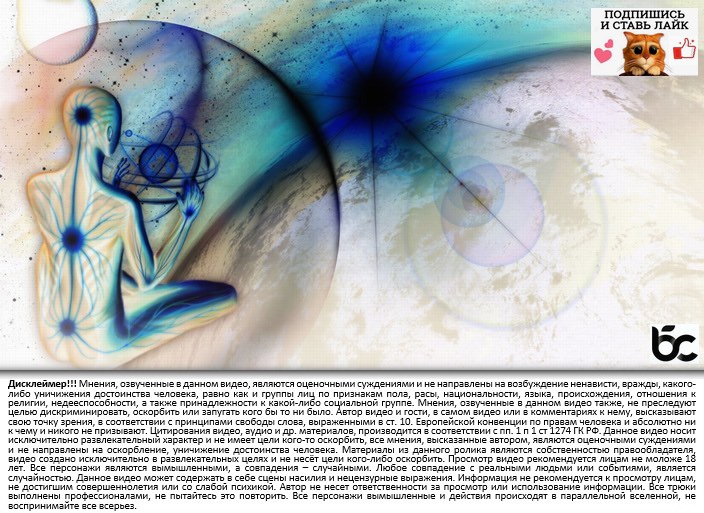 Жизнь – это не череда случайностей. У каждого она имеет свой сценарий и свое предназначение. Причина возникновения проблем проста: они должны помочь нам осознать свои внутренние цели, свое предназначение. Жизнь предназначена для того, чтобы развиться от своего истока до чистого сознания.Момент смерти – это фаза перехода человека из нашего мира в Высший. Это путешествие между мирами строго контролируют Высшие силы. Смерть − это конец жизнь лишь для физического тела, переход души из нашего мира в мир другой (тонкий). Сча́стье — состояние человека, которое соответствует наибольшей внутренней удовлетворённости условиями своего бытия, полноте и осмысленности жизни, осуществлению своего призвания, самореализации. С точки зрения йоги счастье — естественное состояние человека, свойство его природы. Однако в повседневной жизни истинное «Я» человека бывает скрыто под слоями привычного беспокойства. Это беспокойство можно преодолеть с помощью медитации, и тогда человеку откроется его истинное Я, и он сможет испытать чувство глубокого счастья Дисклеймер!!! Мнения, озвученные в данном видео, являются оценочными суждениями и не направлены на возбуждение ненависти, вражды, какого-либо уничижения достоинства человека, равно как и группы лиц по признакам пола, расы, национальности, языка, происхождения, отношения к религии, недееспособности, а также принадлежности к какой-либо социальной группе. Мнения, озвученные в данном видео также, не преследуют целью дискриминировать, оскорбить или запугать кого бы то ни было. Автор видео и гости, в самом видео или в комментариях к нему, высказывают свою точку зрения, в соответствии с принципами свободы слова, выраженными в ст. 10. Европейской конвенции по правам человека и абсолютно ни к чему и никого не призывают. Цитирования видео, аудио и др. материалов, производится в соответствии с пп. 1 п 1 ст 1274 ГК РФ. Данное видео носит исключительно развлекательный характер и не имеет цели кого-то оскорбить, все мнения, высказанные автором, являются оценочными суждениями и не направлены на оскорбление, уничижение достоинства человека. Материалы из данного ролика являются собственностью правообладателя, видео создано исключительно в развлекательных целях и не несёт цели кого-либо оскорбить. Просмотр видео рекомендуется лицам не моложе 18 лет. Все персонажи являются вымышленными, а совпадения – случайными. Любое совпадение с реальными людьми или событиями, является случайностью. Данное видео может содержать в себе сцены насилия и нецензурные выражения. Информация не рекомендуется к просмотру лицам, не достигшим совершеннолетия или со слабой психикой. Автор не несет ответственности за просмотр или использование информации. Все трюки выполнены профессионалами, не пытайтесь это повторить. Все персонажи вымышленные и действия происходят в параллельной вселенной, не воспринимайте все всерьез.