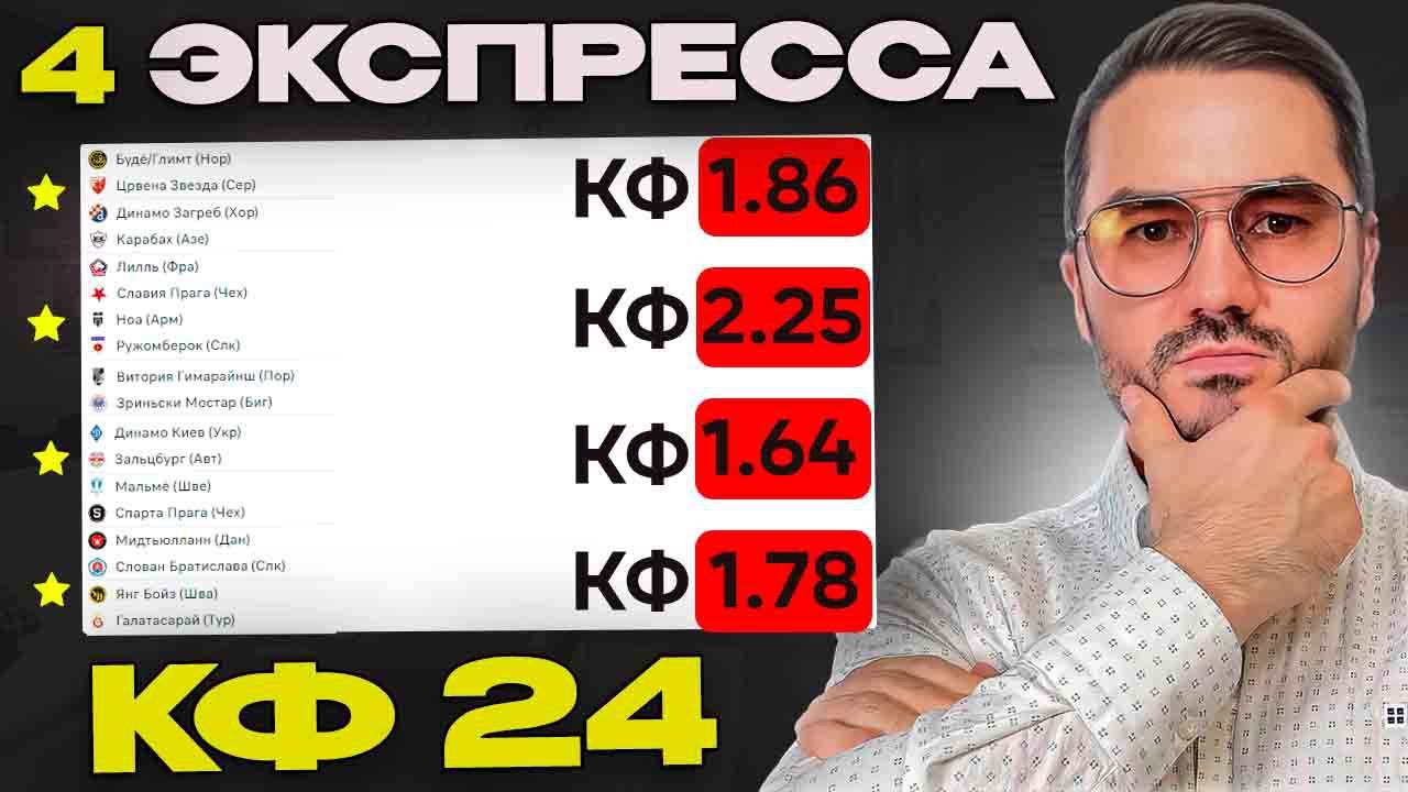 🔥 МОЙ ТЕЛЕГРАММ КАНАЛ https://t.me/+qOjq7imlzs5kNGRi 🔥 Телеграм канал Володи - https://t.me/+o_hwVGZ4TAkyYzAy 🔥 Мой канал на ЖК - https://www.youtube.com/@analitika_sporta 🔥ДОМ ЭКСПРЕССОВ - https://t.me/+3dtqthgotdQxMTYy Экспресс на ФУТБОЛ кф 24 из 8-и событий. Прогнозы на футбол. Ставки на спорт Будё Глимт-Цверна Звезда. Динамо Загреб-Карабах. Лилль-Славия Прага. Ноа-Ружомберок. Динамо Загреб-Зальцбург. Мальме-Спарта Прага. Мидтъюлланн-Слован Братислава. Янг Бойз-Галатасарай Беспроигрышная стратегия ставок. Стратегия ставок на футбол. Стратегии ставок на спорт. Лучшие стратегии ставок на футбол. Стратегия на гол фаворита в первом тайме. Прогнозы на футбол. Прогнозы на футбол сегодня. Прогнозы на Лигу Европы сегодня. ЖБ ставки на сегодня. Экспресс ставка. Экспресс на футбол. Надежный экспресс на футбол.