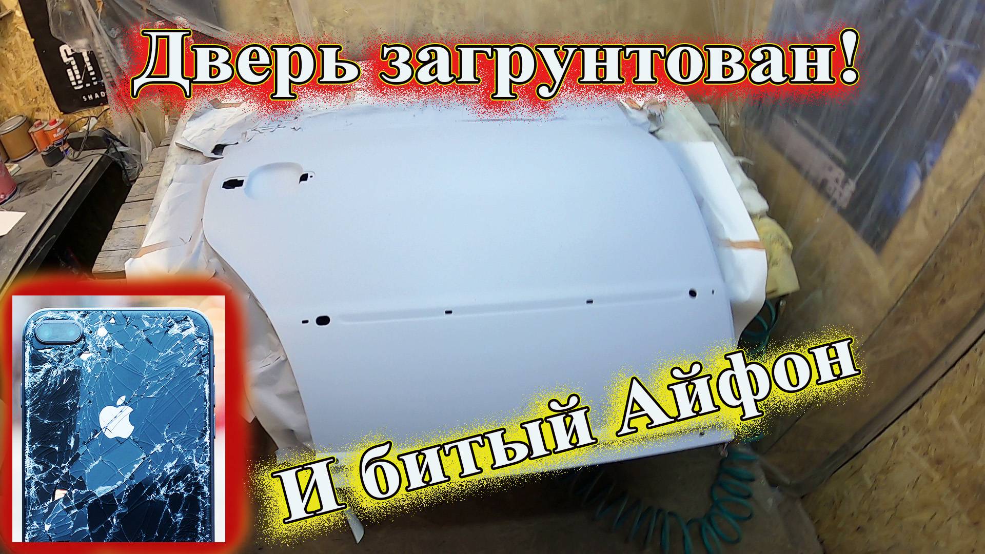 Дверь загрунтован и битый Айфон.