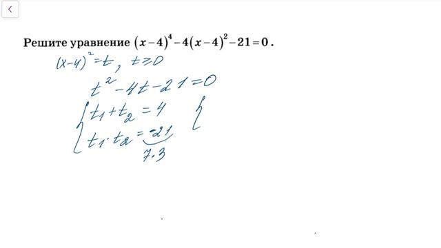 Решение задания 21 (вторая часть) из ОГЭ по математике. Уравнение четвертой степени