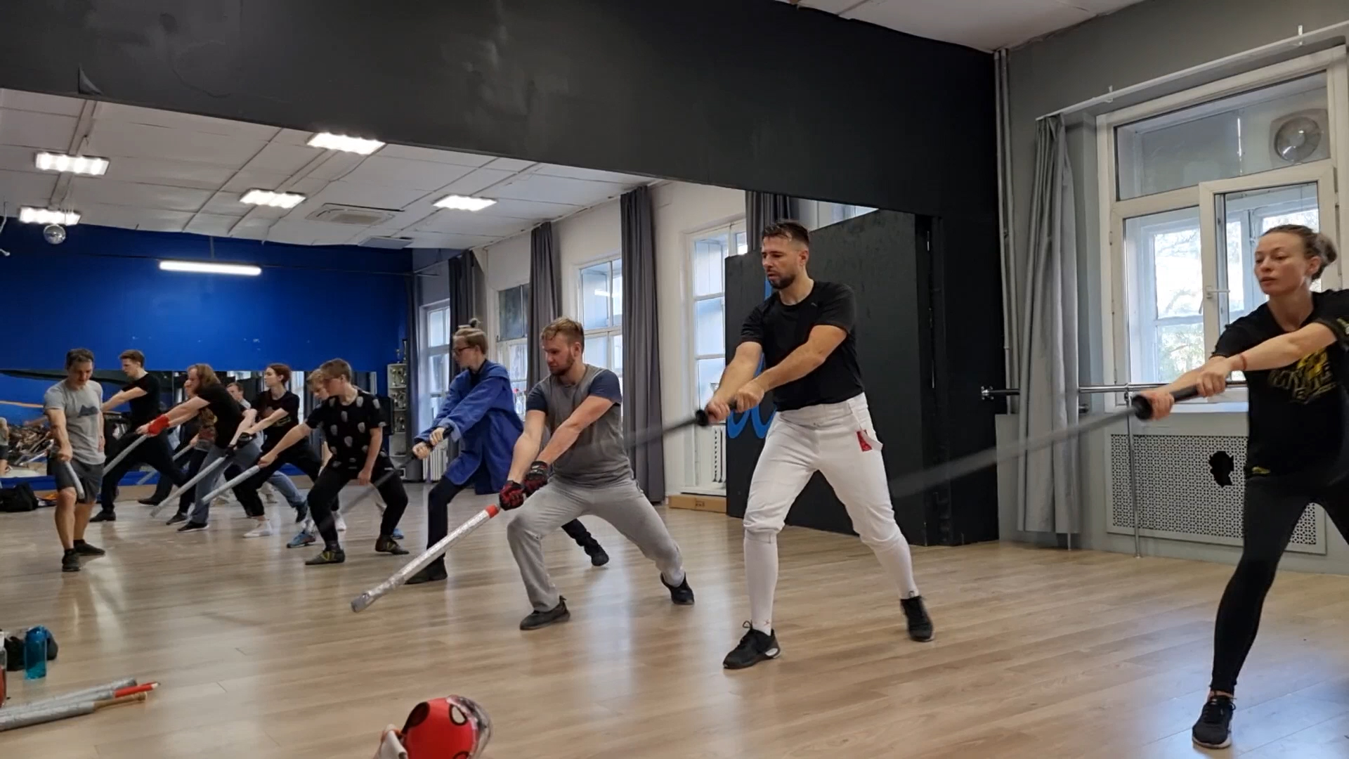 Школа японского фехтования Katana Club - выполнение кихон-Доса длинными и короткими мечами