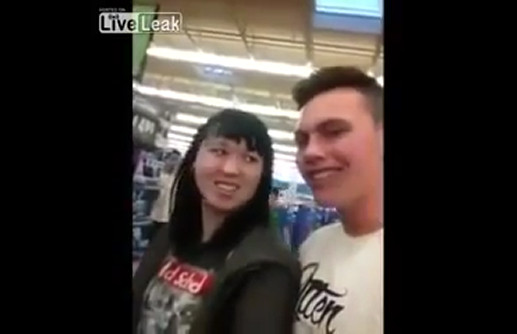 Парень достает людей, за что получает по репе.