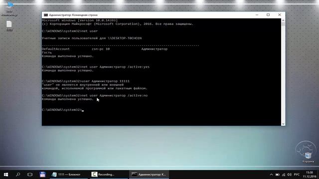 Как включить скрытую учетную запись Администратор