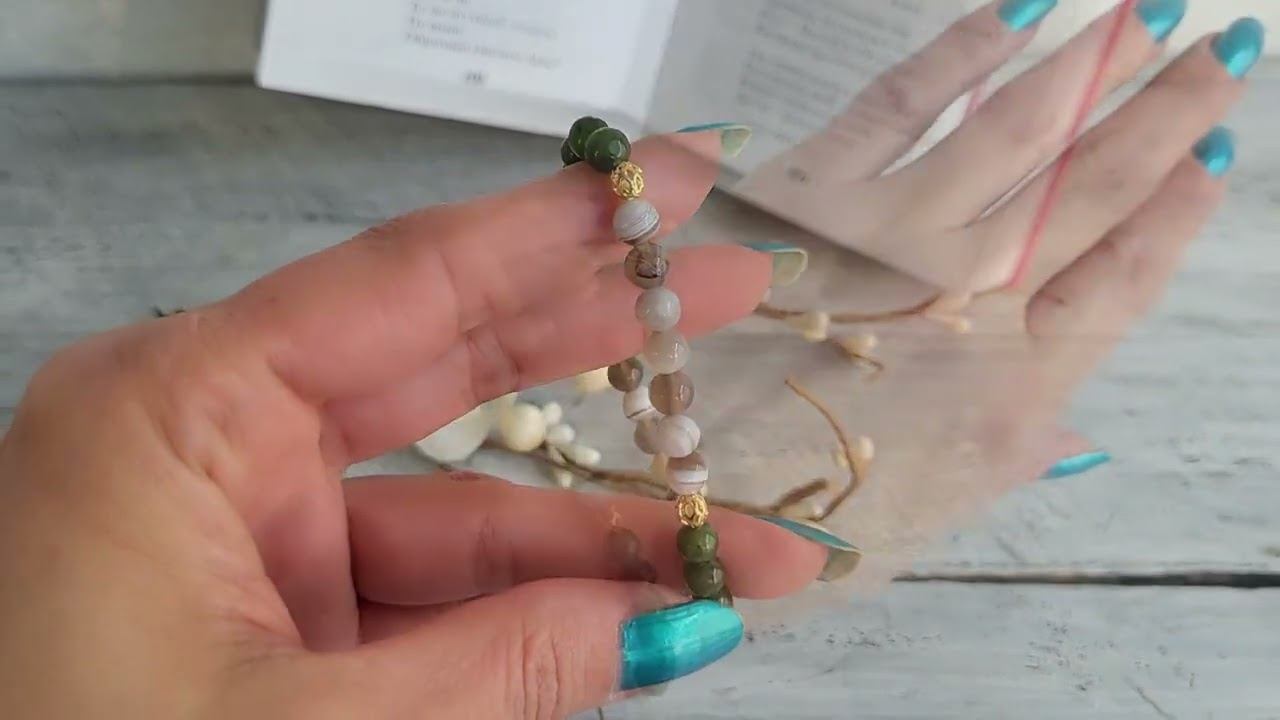 Браслет из нефрита, агат бразильского