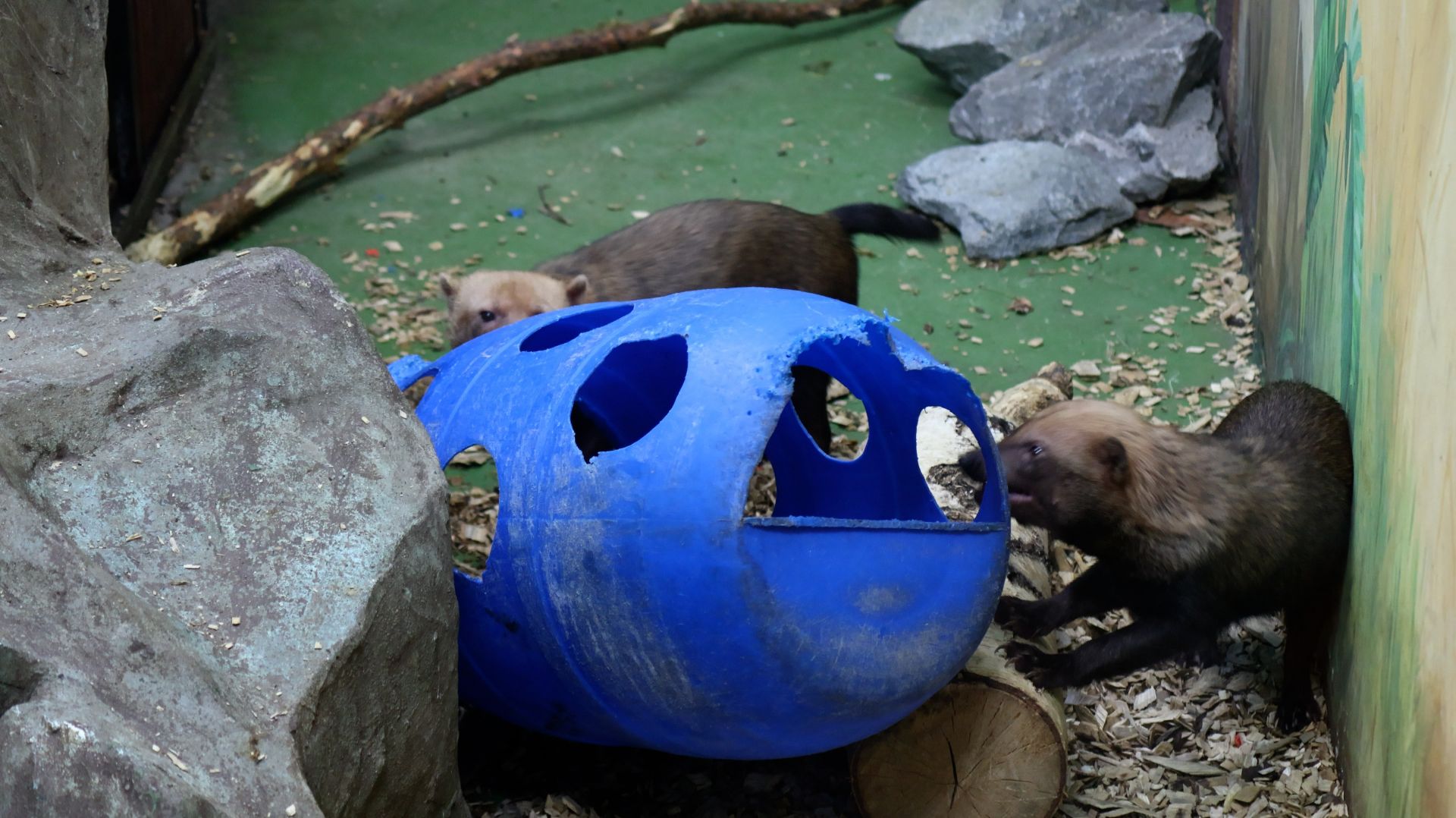 Кустарниковые собачки заняты перестановкой в вольере..