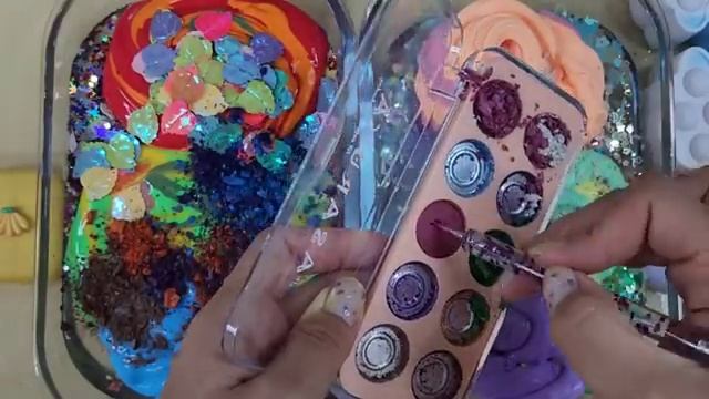 Радужная слизь! Смешиваем макияж, детали, блёстки в слайм! Успокаивающее видео со слизью ASMR