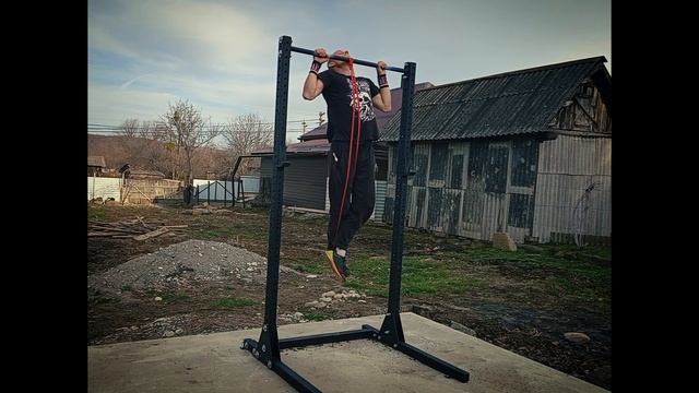 Подтягивания на турнике прямым хватом с резинкой