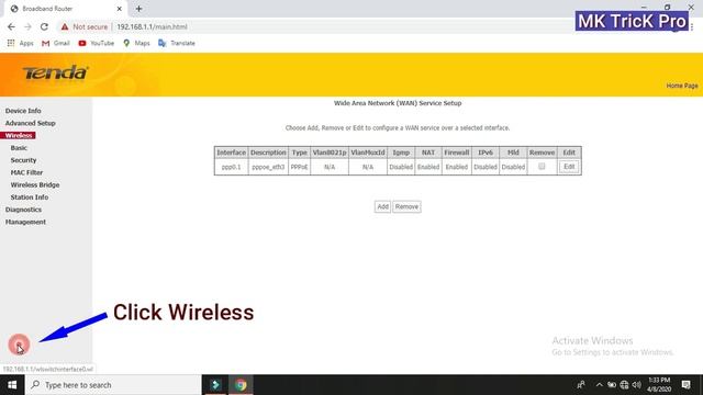 #mktrickpro how to setup tenda adsl2+ modem router with pppoe connection, 2020
