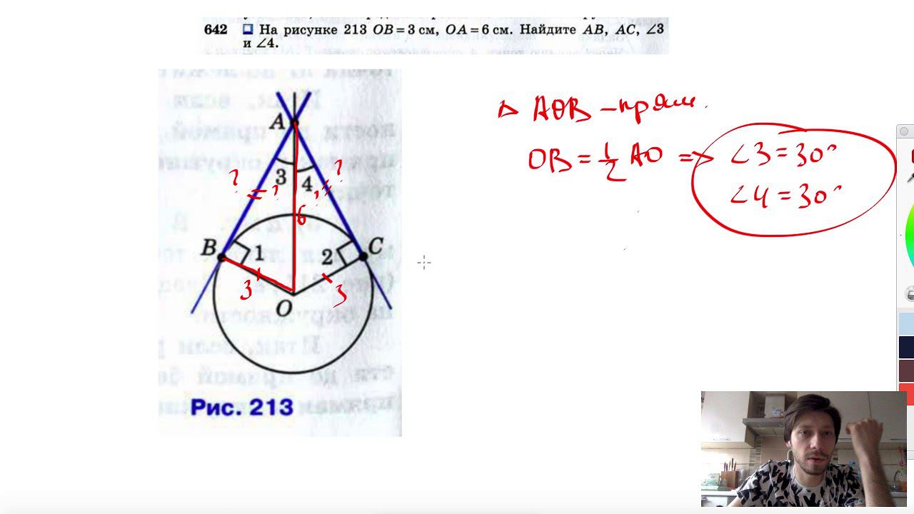 №642. На рисунке 213 ОВ=3см, ОА=6 см. Найдите АВ, AC, ∠3 и ∠4. Поддержать канал рублём - 5469400944002125 (Сбербанк) Мой второй канал для подготовки к ЕГЭ и ОГЭ - https://www.youtube.com/ЕвгенийСумин Инстаграм - https://www.instagram.com/EGE_OGE.math Личный инстаграм - https://www.instagram.com/ee_sumin VK - https://vk.com/evgeniysumin FB - https://www.facebook.com/EvgeniySumin